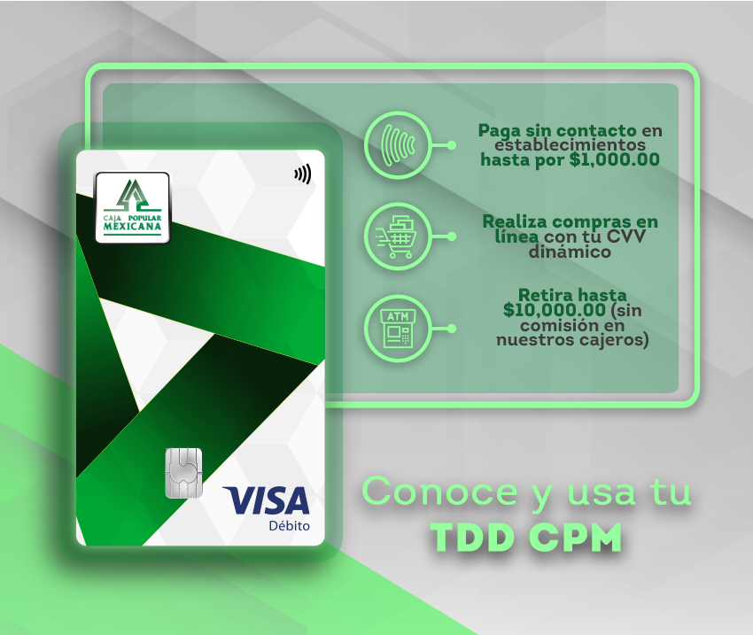 - Puedes realizar disposiciones en efectivo en los cajeros automáticos y ventanillas de Caja Popular Mexicana sin cobro de comisión.