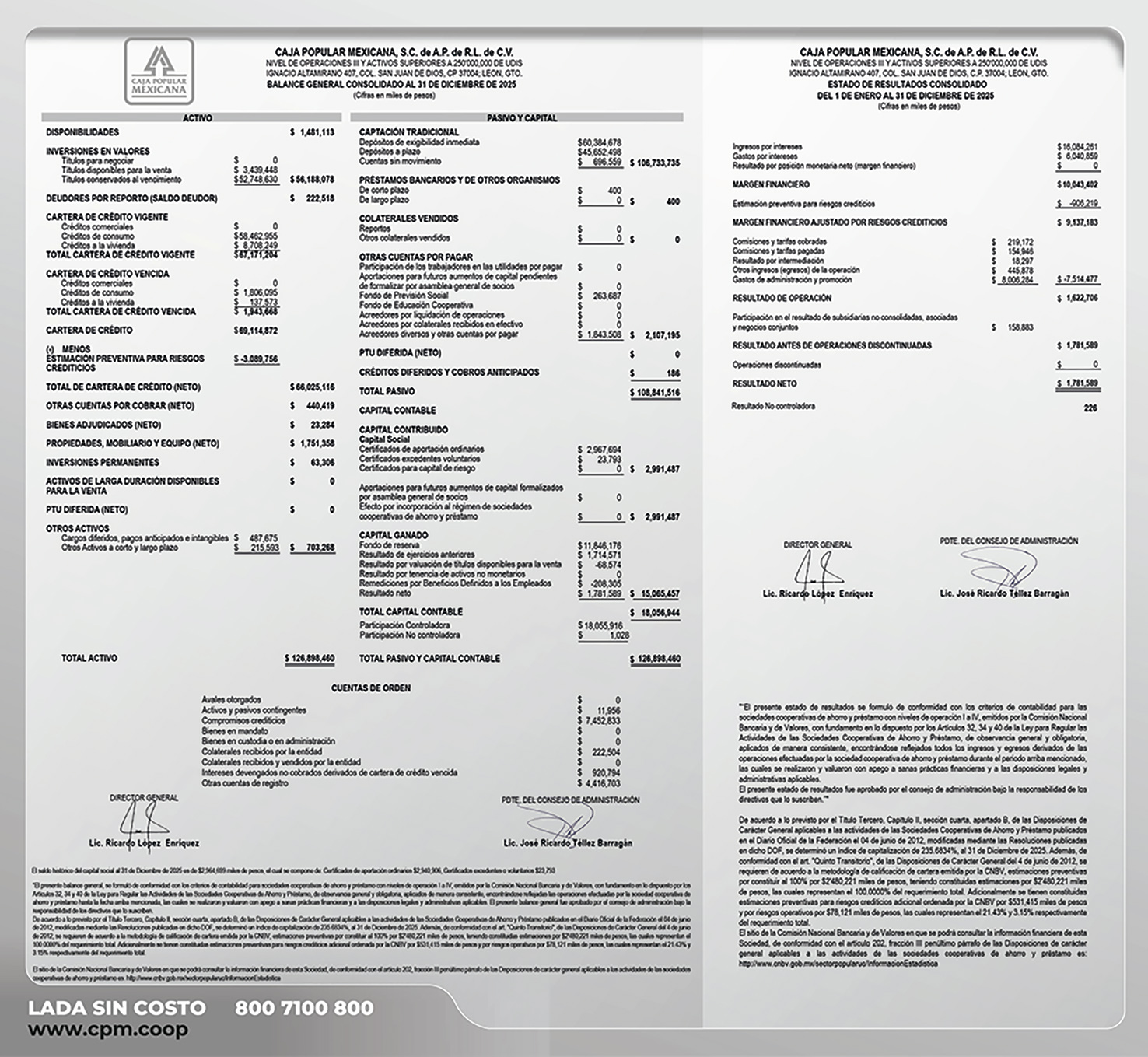 Consulta el Balance General y Estado de Resultados, con corte al 31 de diciembre de 2025 AQUÍ